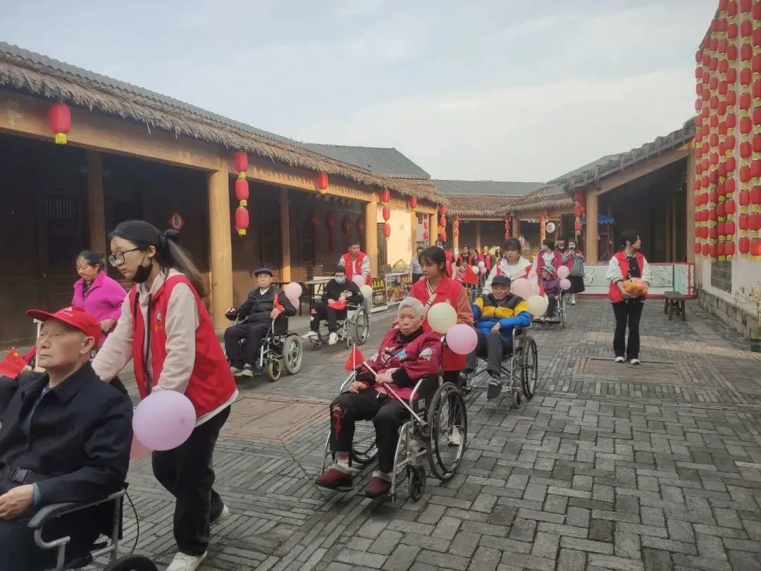 在保障老人人身安全的前提下,社工站组织20多名老人到非遗博览园内游玩踏青。志愿者们推着轮椅、搀扶着老人们,欣赏园内的美丽春景,一路欢歌笑语。老人们精神饱满、兴致盎然,纷纷合影留念,气氛欢乐而祥和。