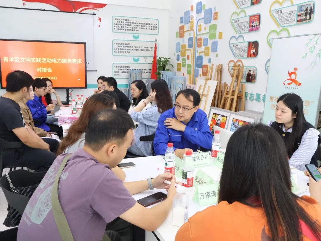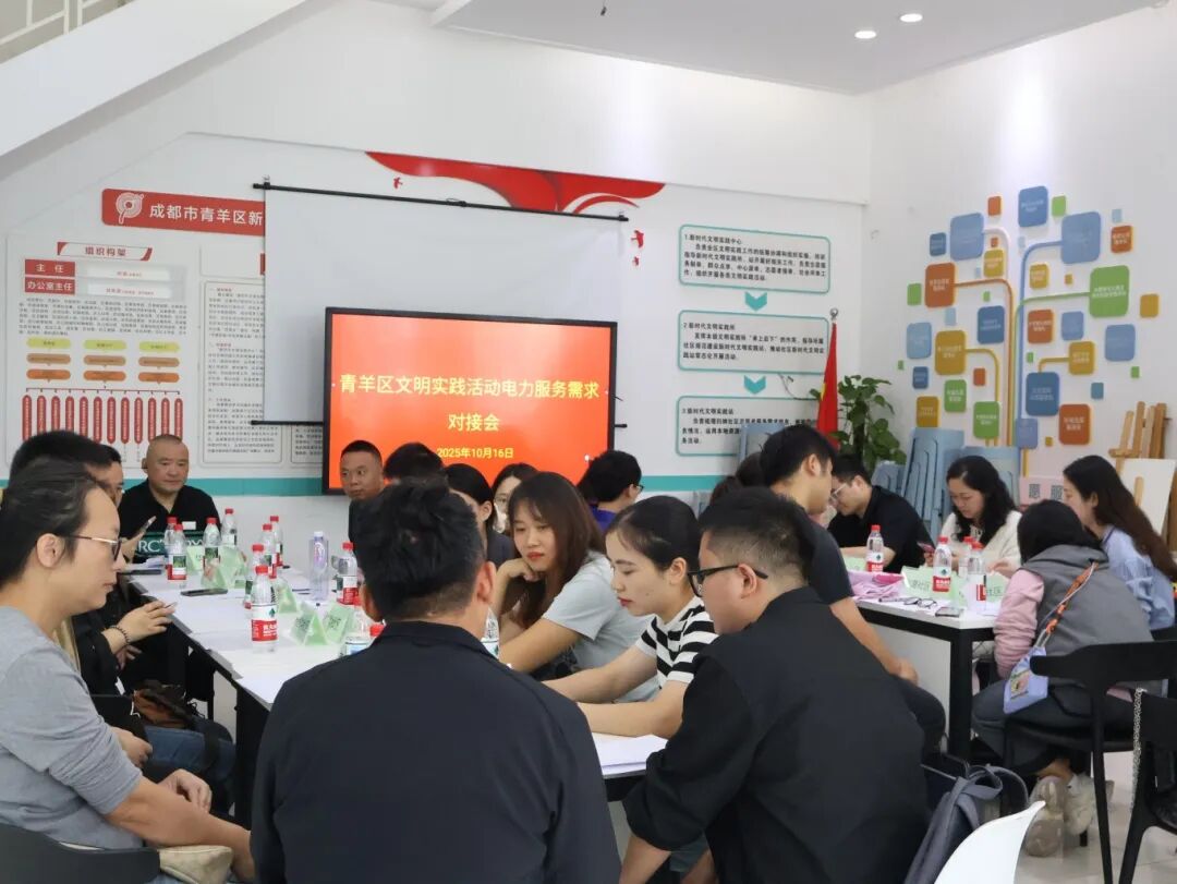 10月16日上午,青羊区文明实践活动电力服务需求对接会在青羊区新时代文明实践中心开展。青羊区29个新时代文明实践站专管员与4名分别来自国网成都供电公司青羊供电中心长顺、苏坡、文家营业所的负责人面对面进行需求交流与资源共享,共同探索“文明实践+”新模式。